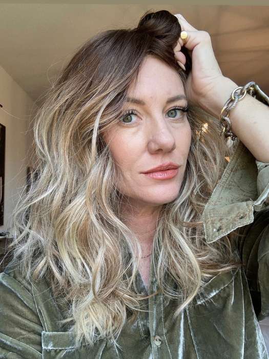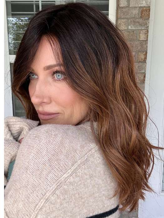 Balayage Beauty by Raquel Welch comes in trendy ombré shades that start at the roots and gradually transition into lighter tips around the face. This heat friendly synthetic wig has long layers and loose beach waves for a dramatic hairstyle. The lace front and monofilament part create a realistic appearance.