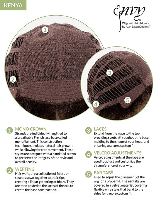 With a full head of bouncy curls, Kenya Wig by Envy has chin-length 'do gives you volume for days. Her mono crown construction gives this wig one of the most natural appearances available, so you can run your fingers through those curls without revealing a thing.