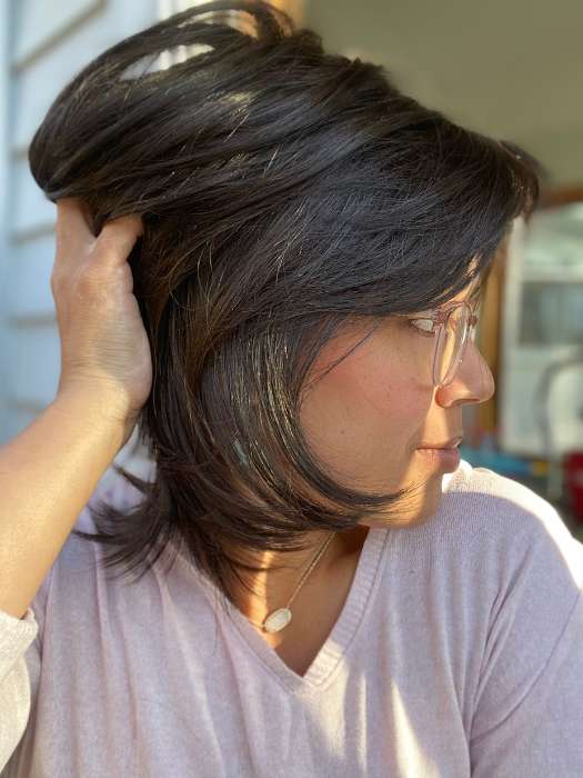 London by Ellen Wille is from their Modixx Collection. This synthetic hair wig showcases a stunning bob hairstyle with gradual layers that rests above the shoulders. The hand tied monofilament top helps provide all-day comfort and allows you to part the hair in any direction. The extended lace front creates a realistic hairline.