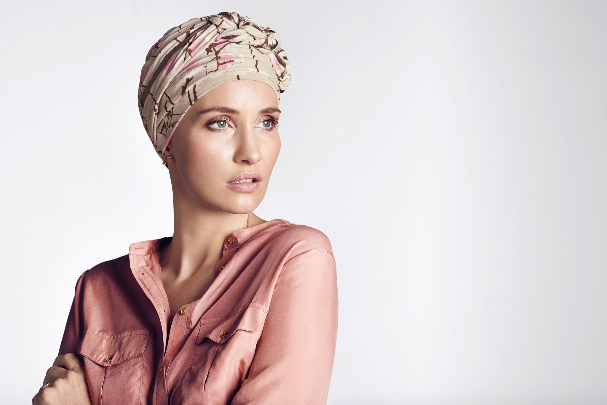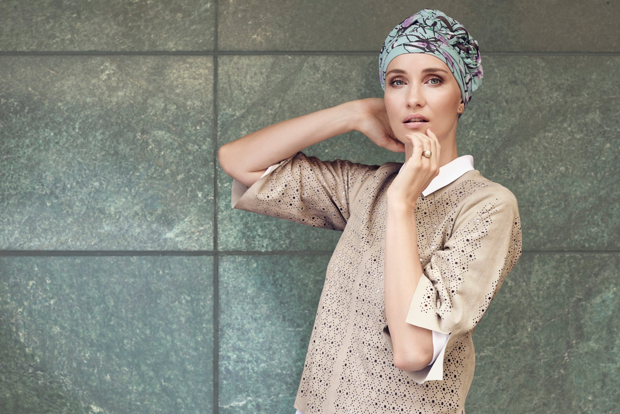 A beautiful turban with a beautiful story. The Azure Turban with its gorgeous magnolia print is designed by the renowned Danish super model and photographer, Helena Christensen. The elegant Azure turban with a fitted decoration on the side provides the perfect fullness around the head and is easy to style and fit. Wear it with your favorite jeans or dress it up with a classic black dress and heels.