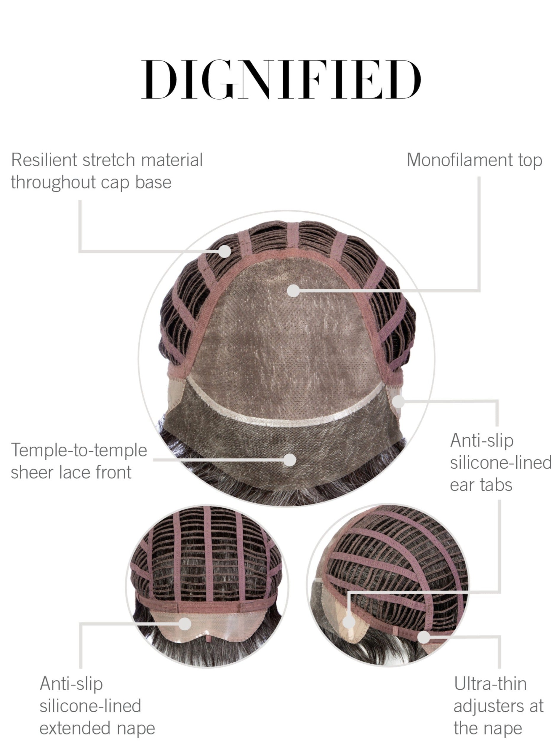 Dignified from the Hairdo Collection is the perfect short cut with soft and loose spiral curls. This wig has longer length around the ears and nape, and shorter waves throughout the sides and back allowing you to custom cut the wig to your liking. With the Excell Heat Friendly Synthetic Fiber, you can smooth out the waves or give a sleek straight look to this wig.