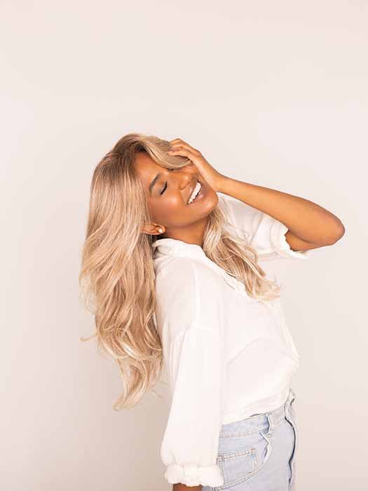 MILKY-OPAL | A Blend of Creamy Blonde and White Blonde Rooted with Warm Brown