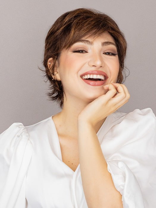 Voltage Elite by Raquel Welch offers the same short, barely waved, all over layered style as our top-selling Voltage wig. This stunning, no-fuss and versatile salon cut now includes a temple-to-temple lace front, a hand-tied monofilament top, and Memory Cap II Base for the ultimate in light, cool comfort!