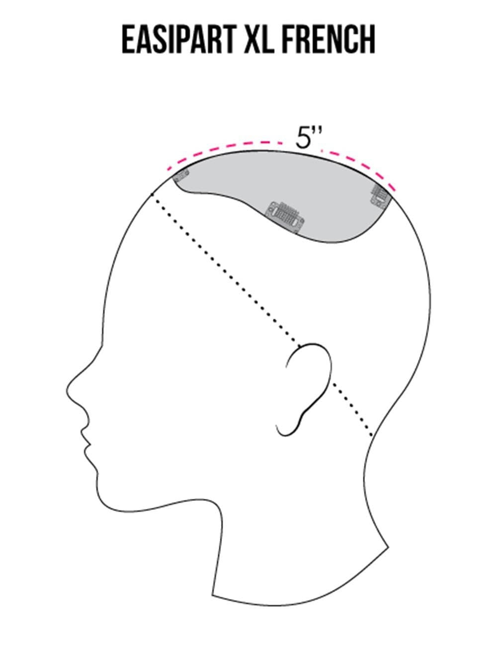 Ooh-la-la! easiPart French XL 12” Remy Human Hair Topper by Jon Renau offers this one-piece clip-in volumizer, worn over the part, adds instant thickness with a supremely natural appearance. Beautiful Remy human hair is hand tied to a double monofilament base using French knotting, a luxury technique that hides and protects the knots for an undetectable look and feel. Constructed on a larger base than easiPart French 12”, this topper provides extra coverage and volume for the beginning stage of hair loss.