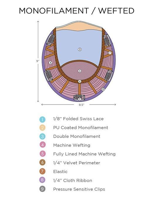It features 100% Remy human hair – the highest quality available. The monofilament top provides multi-directional styling and looks like natural hair growth.
