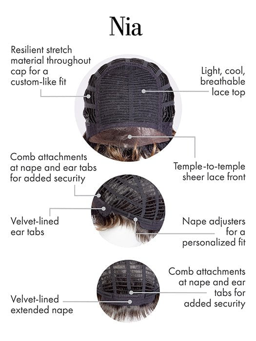 Nia by Kim Kimble is a bold short wig that is made with Tru2Life heat friendly synthetic fiber for infinite styling potential. The boycut crop haircut has a slight wavy texture and is longer in the front. The temple to temple lace front creates an authentic-looking hairline, and lightweight lace top allows your scalp to "breathe."