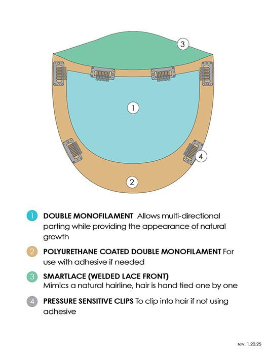 Top Form Lace HH 14" by Jon Renau is perfect mid-progressive hair loss. Crafted with 100% Remy human hair, this hair topper's lightweight front gradually transitions to medium coverage at the crown and back. The temple-to-temple SmartLace lace front creates a realistic hairline. Great for adding subtle volume and movement!