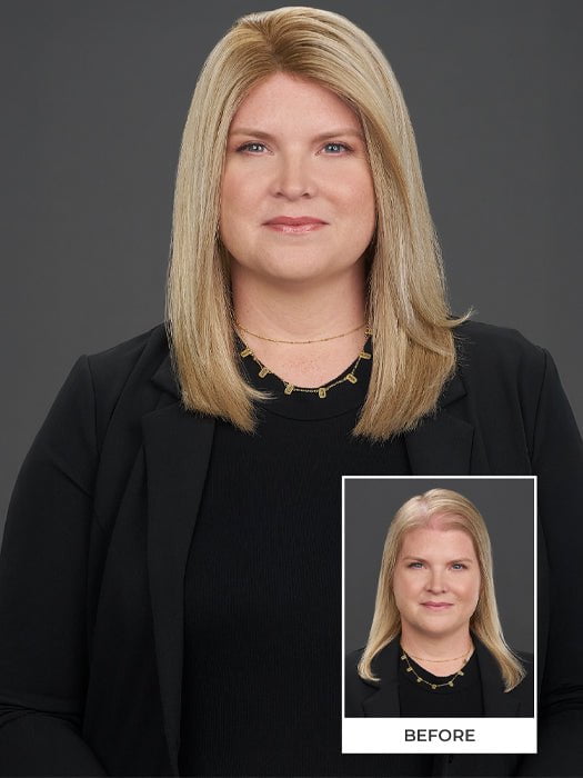 Top Form Lace HH 18" by Jon Renau adds amazing coverage and beautiful length to your hair. This long hair topper features 18" of 100% Remy human hair for a soft, luxurious look and feel. The temple-to-temple Smart Lace front for a natural hairline creates a natural hairline. This hair topper is lightweight at the front and gradually transitions to medium coverage at the crown and back. Great for mid-progressive hair loss.
