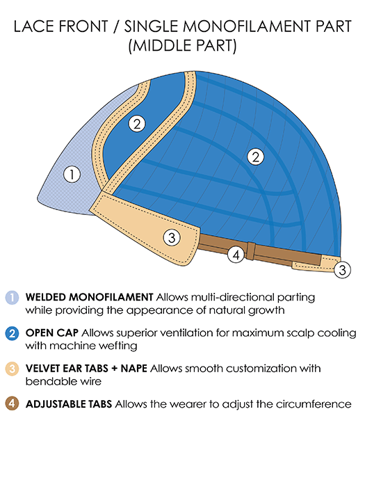 • Monofilament Part – Allows the appearance of natural hair growth where the hair is parted.