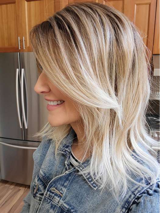 MILKY OPAL R | A Blend of Creamy Blonde and White Blonde Rooted with Warm Brown