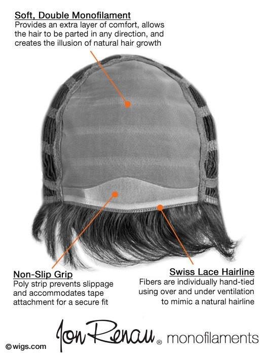 Jon Renau's signature 'double monofilament' top is soft, comfortable, creates a natural looking crown, and offers beautiful movement. This wig compliments all face shapes!