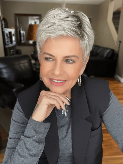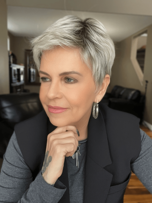 BEST SELLER | Risk by Ellen Wille is a lightweight pixie cut wig with short bangs it weighs less than two ounces! This wig features a lace front and monofilament crown, and is ideal for a petite to average head size. The density of the ready-to-wear synthetic hair looks more like natural hair and requires little to no customization or thinning. Risk is part of the Ellen Wille Hair Power collection. Also available as Risk Comfort with a 100% hand-tied cap. Risk is also available in a great selection of grey colors: Pepper Mix, Salt & Pepper Mix, Smoke Mix and Silver Mist White.