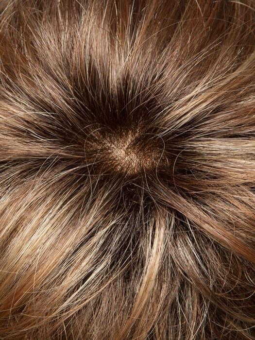 TOBACCO ROOTED | Medium Brown base with Light Golden Blonde highlights and Light Auburn lowlights and Dark Roots