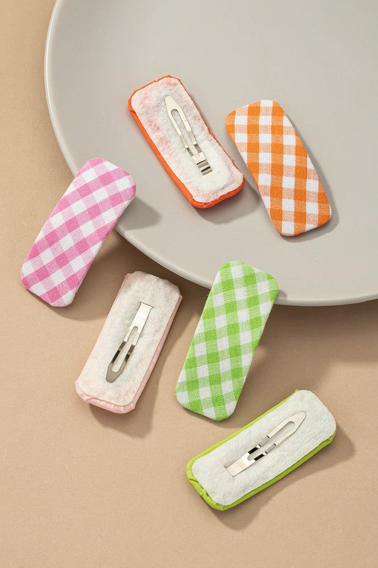 Set of 2 fabric hair snap clips. One with checker pattern, the other with solid color. Made...