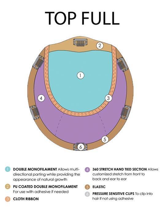 This elegant Top Full 18-inch topper by Jon Renau adds length and volume over the entire crown, creating the illusion of natural growth from the hand tied mono top. The 11-inch base clips in comfortably and securely. Top Full 18” is for the advanced stage of hair loss