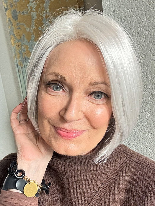 Shelby by Jon Renau delivers a modern short bob with stacked layers for gorgeous movement and a graduated silhouette for a polished look. Part of the SmartLace Synthetic Collection, the ear-to-ear lace front gives the appearance of hair growing from the scalp for a flawless hairline. The cap includes a monofilament top for multi-directional parting and a wefted back for a cooler and breathable fit.