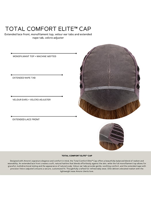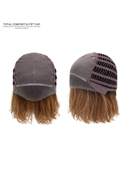 Extended Lace Front: Soft lace material stretches across the forehead and connects down to the front portion of the ear tabs for a realistic-looking hairline. Great for off-the-face styling!